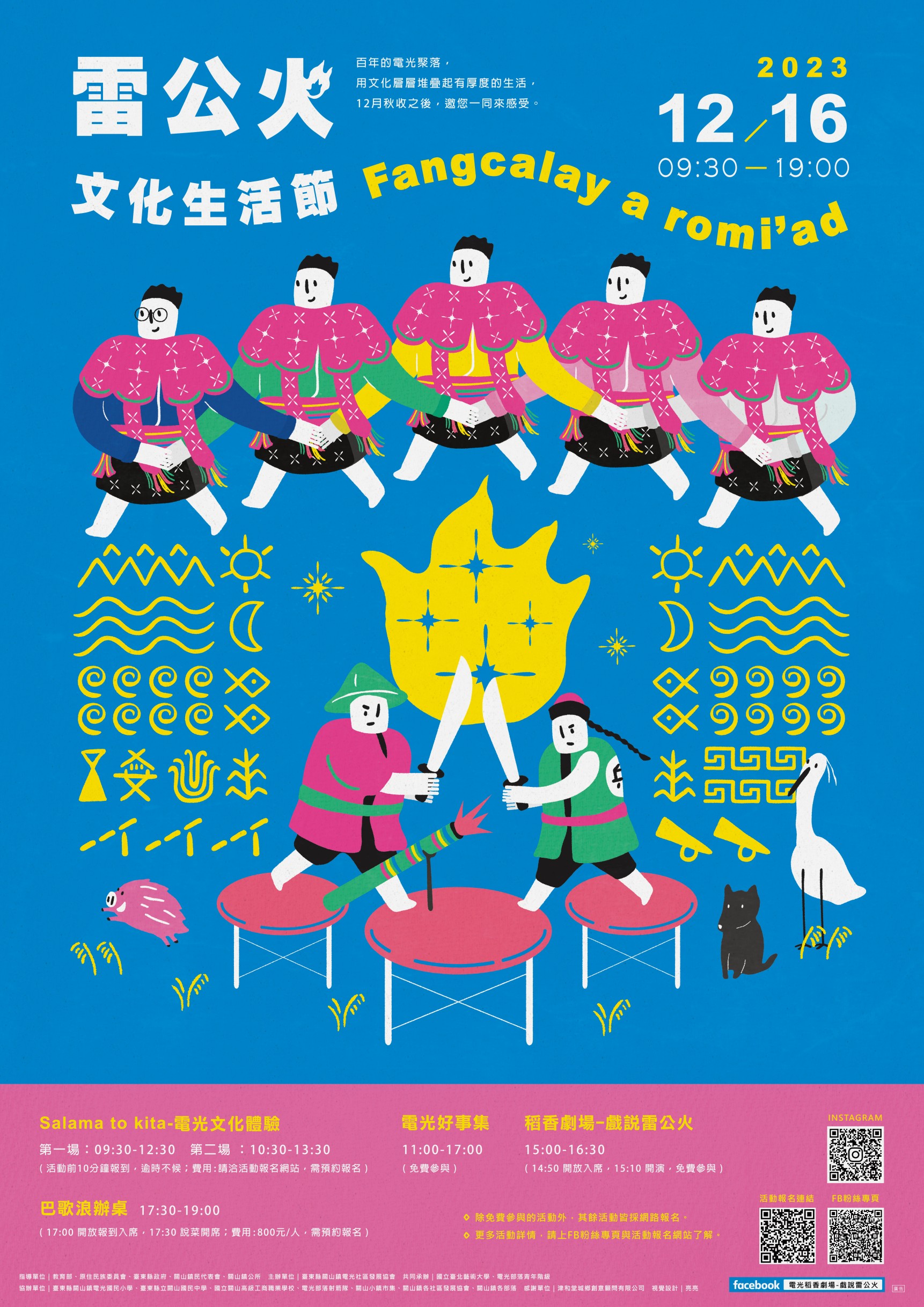 | 二、 | 活動報名方式:掃描海報上的QRCODE即可報名,除「電光文化體驗」及「巴哥浪辦桌」採預約報名繳費制,「電光好事集」及「稻香劇場-戲說雷公火」無須報名即可免費參與。 |